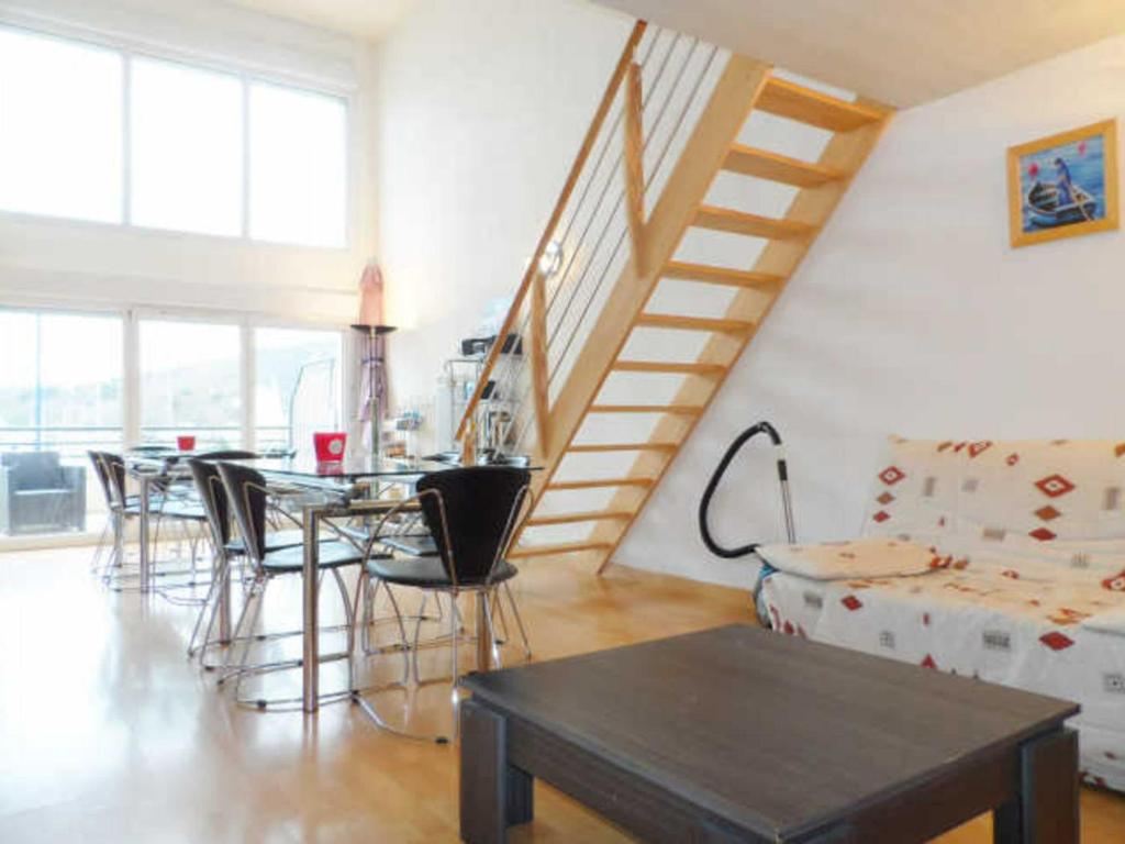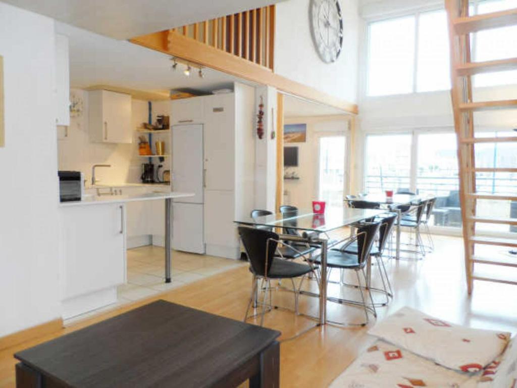 Cet hébergement est commercialisé par Poplidays, agence de voyages française spécialisée dans la commercialisation de locations de vacances. Poplidays vous propose des biens gérés par des agents immobiliers et des professionnels de la location saisonnière. A propos du logement : DIVES SUR MER / PORT GUILLAUME. Dans une résidence de standing, ce loft de 4 pièces en duplex, d'une capacité d'accueil de 8 personnes, d'une superficie de 72m² environ disposant d'une terrasse privative exposée Nord est avec une magnifique vue sur le Port de plaisance de Port Guillaume. Le loft comprend : un séjour/salon (TV et 2 canapé convertible de 140x190) donnant sur une grande terrasse, une cuisine semi ouverte (avec un lave-vaisselle, 4 plaques de cuisson, un four traditionnel, un four micro-ondes et un réfrigérateur avec congélateur), une salle d'eau (douche), des WC séparés; à l'étage : une mezzanine comprenant une première chambre ( 1 lits de 140x190), une seconde chambre (2 lit superposés 90x190) une salle d'eau (douche) avec des WC séparés et une troisième chambre (lit de 140x190). Une place de parking. Les animaux de compagnie sont acceptés dans cette location. Prestations complémentaires (en option) à régler le jour de l'arrivée: ménage 70E, kit de draps (90x190: 20E/ 1