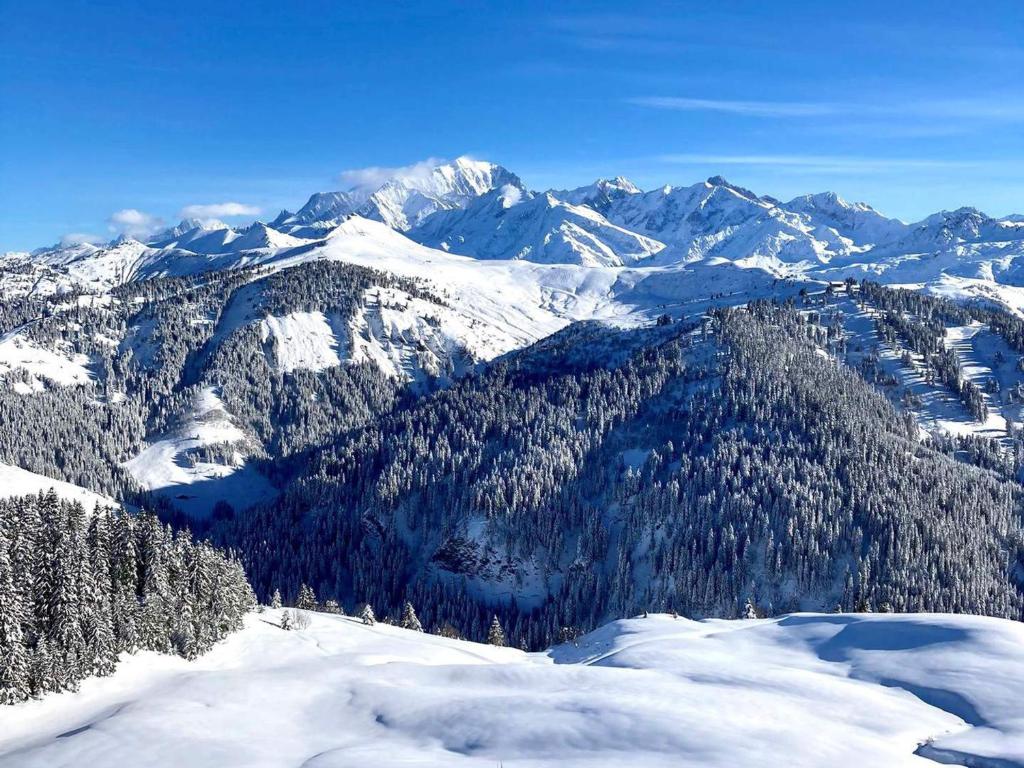 Situé à Flumet, en Rhône-Alpes, l'établissement Le cœur des Evettes - Apt aux pieds des pistes dispose d'un balcon et offre une vue sur la montagne. V