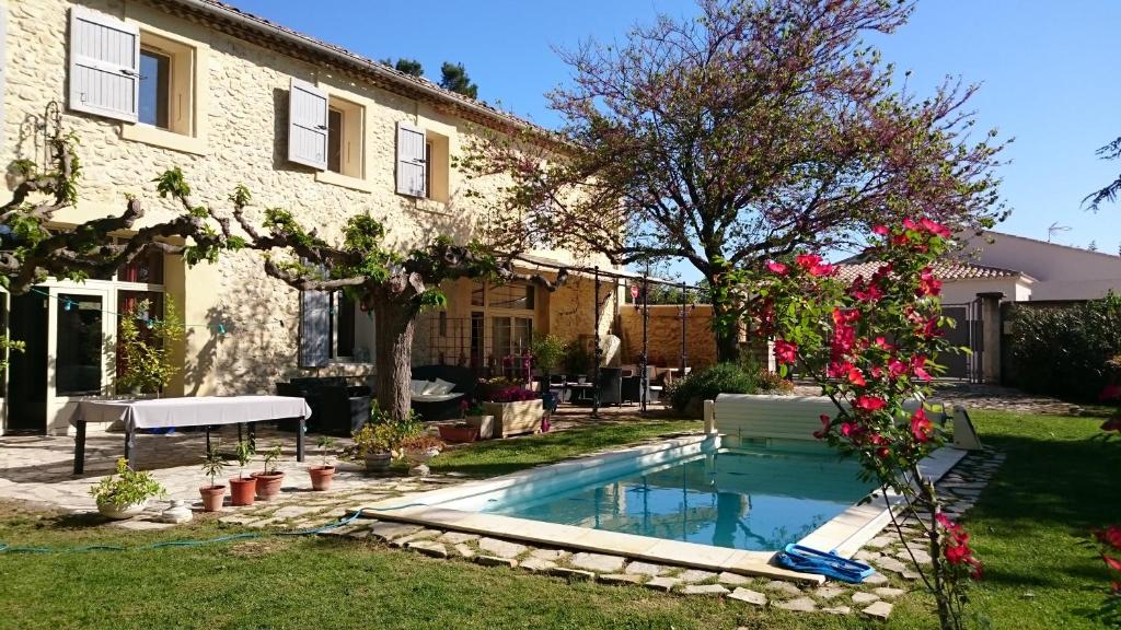 Doté d'une piscine extérieure, d'une terrasse et d'un jardin, l'établissement "Au Mas de Marie" est situé à Lédenon. Cette maison d'hôtes aux murs en pierre propose une connexion Wi-Fi gratuite et un service de prêt de vélos.