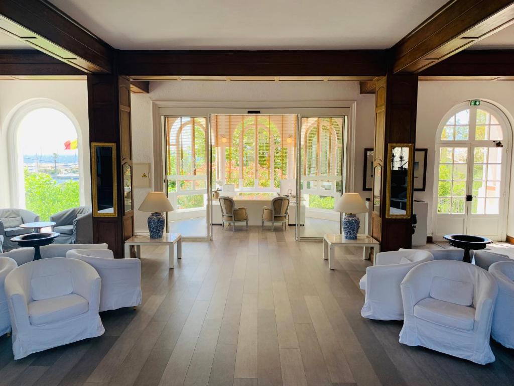 L'Auberge De La Calanque propose des chambres dotées d'un balcon entièrement meublé offrant une vue sur la mer Méditerranée et le port du Lavandou. Le jardin et sa piscine extérieure bénéficient d'une vue panoramique sur les Îles d'Or.