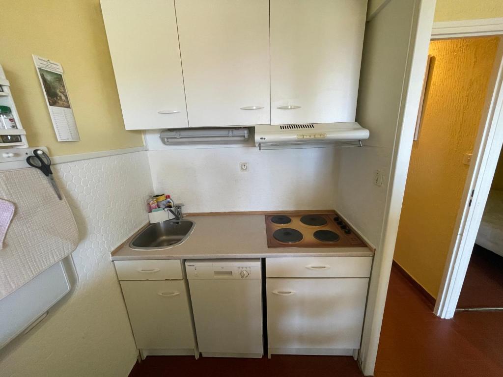Cet appartement comprend une chambre, une télévision à écran plat et une kitchenette.