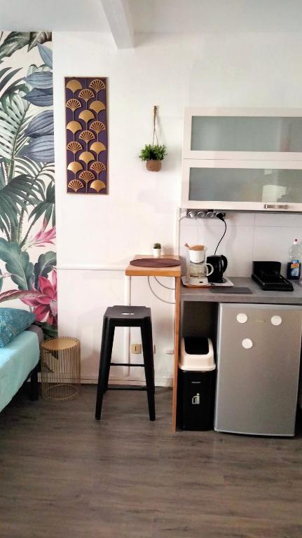 Studio proche de la gare et des transports (tram notamment). Vous disposez pour votre confort des produits de bases pour la salle de bains et la cuisine. L'appartement est équipé d'un lit de 120*190, d'un bureau et du wifi, d'une salle de douche avec serviettes et de la télévision. Vous disposez pour votre confort des produits de bases pour la salle de bains et la cuisine tels que le sucre, le café, le thé, le sel, le gros sel, le poivre, de l'huile, de la moutarde, des épices et plus. Plusieurs studios sont disponibles à la location dans cet immeuble.