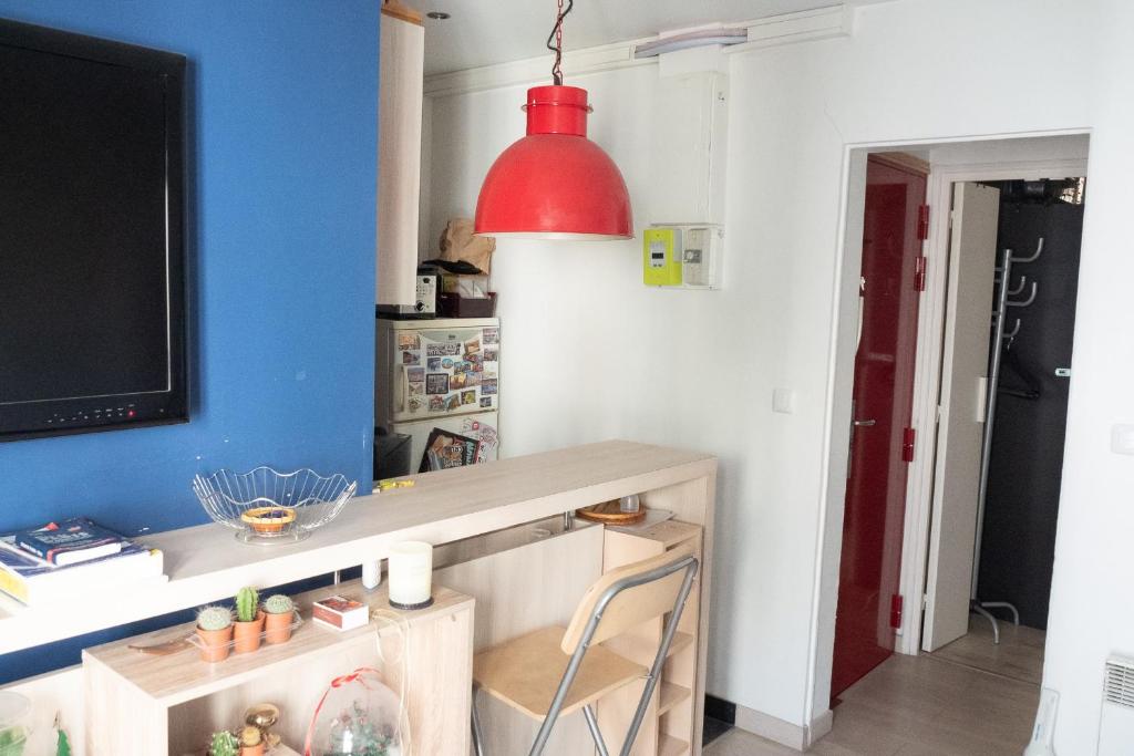 Cet appartement comprend une chambre, une cuisine et une salle de bains. Il dispose également d'une télévision.