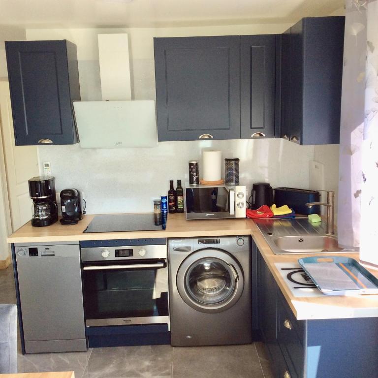 Cet appartement comprend une chambre, une télévision à écran plat ainsi qu'une cuisine entièrement équipée avec un lave-vaisselle, un micro-ondes, un lave-linge, un réfrigérateur et un four.