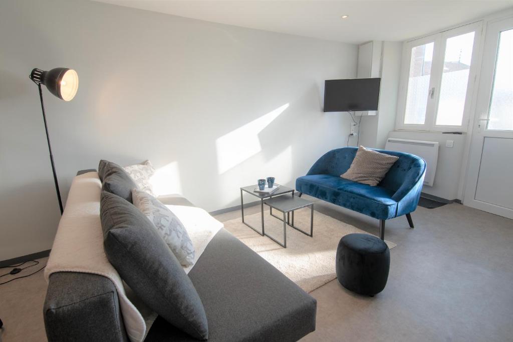 Offrant une vue sur le jardin, le GitedesDalles 3 épis avec terrasse vue mer propose un hébergement avec une terrasse et une bouilloire, à environ 31