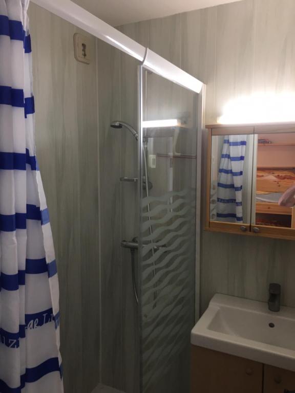 venez découvrir les sensations de bien-être au milieu des savoyards, vous serez reçu ,après prise de rendez vous avec ISABELLE au moins 3 jours avant votre arrivée, bienvenue dans notre studio avec sa Terrasse RdC et sa vue dégagée sur le Village et la Vanoise , séjour équipé TV ,canapé , coin repas, 4 couchages : canapé 2 places 140 et 2 lits superposés 80 salle de bains avec douche italienne , WC séparés . cuisine avec lave vaisselle, réfrigérateur, four, plaques électriques. local à skis