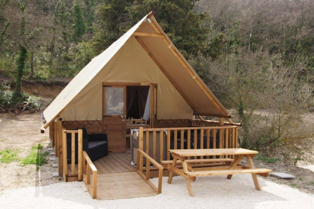 Le Camping le Vallon est situé à Bonnieux. Un réfrigérateur et une bouilloire sont également fournis. Ce camping possède un jardin et une terrasse. Le