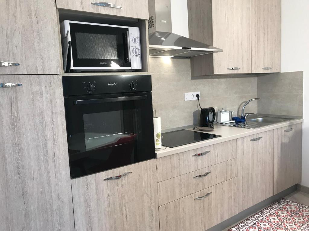 Cet appartement possède une cuisine entièrement équipée, ainsi qu'un salon et une chambre dotés d'une télévision à écran plat. Vous bénéficierez d'un panier de bienvenue, comportant une bouteille de vin, une bouteille d'eau, des collations salées, du jus de fruits et de la confiture.