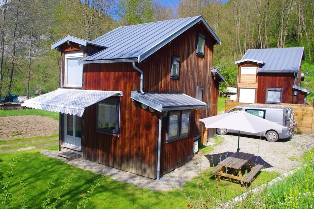 L'établissement Chalet de 2 chambres a Niaux avec magnifique vue sur la montagne et jardin amenage se trouve à 550 m du centre (Niaux).