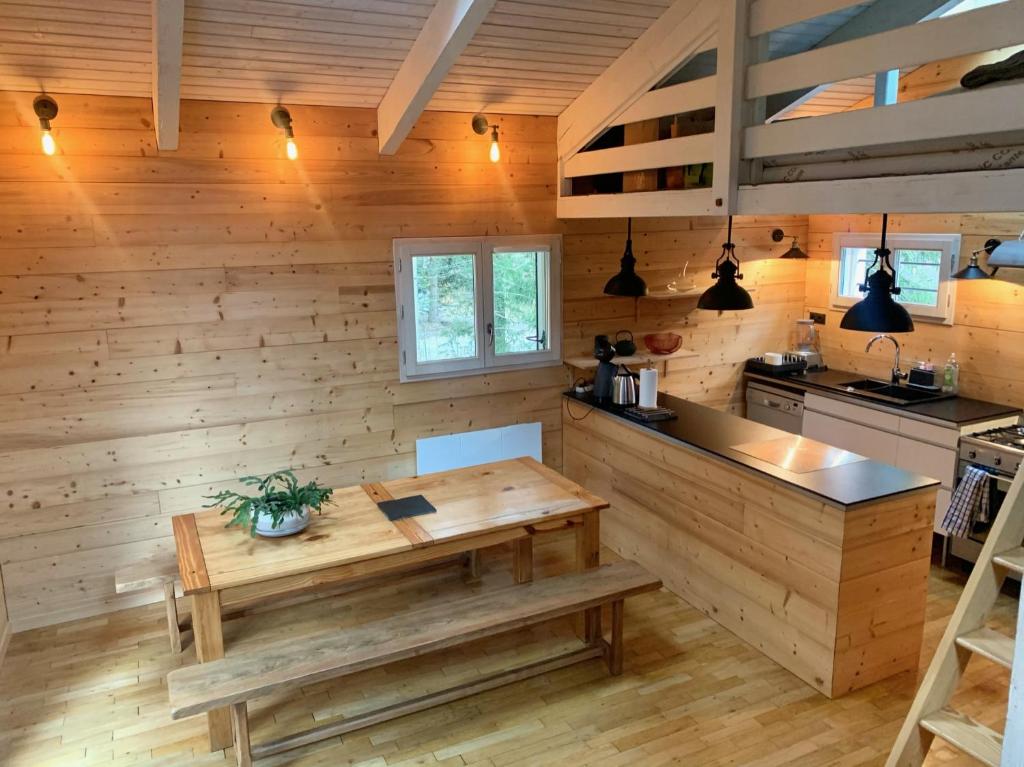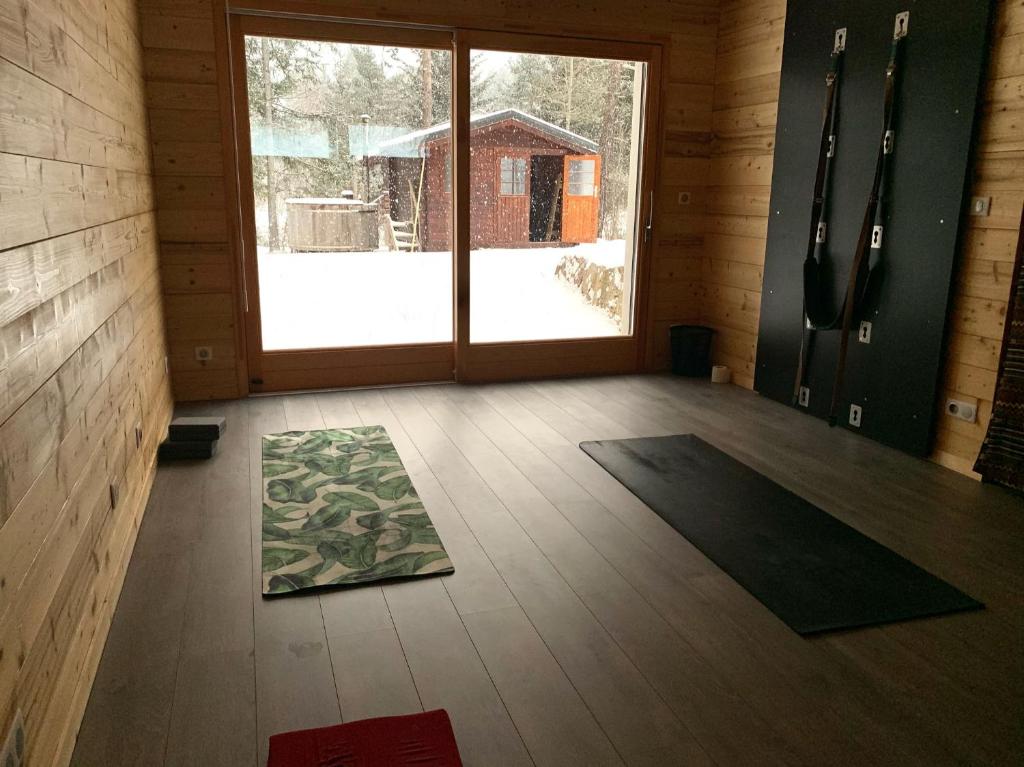 There is a bright living room / kitchen of 30m2, a bedroom with double bed, two single mattresses are in the mezzanine bedroom and two convertible sofas in the downstairs room. One shower, two toilets and an entrance room, for a total capacity of 4 to 6 people in 90m2. It is equipped with an infrared sauna for 2 people, a 10m2 terrace with one tables and a gaz plancha, a garden and private parking for two cars. The kitchen is equipped with a 5-burner stove and oven, dishwasher, microwave, fridge-freezer, blender, toaster, espresso machine, kettle, citrus press, raclette grill, pancake grill and in the entrance hall there is a washing machine, dryer, iron and ironing board. For babies and young children there is an umbrella bed. Internet / wifi, TV, Bluetooth speaker, books and games are available. The entrance and downstairs rooms are equipped with electric floor-heating, the pellet stove in the living room contributes to the warm atmosphere and comfort with electric heaters for maintaining the temperature for extended absences. The lower room is about 25m2, it was built for the practice of yoga, relaxation, and mediation, it is also popular with children for the play area, it can become a bedroom. In the event of a government restriction making it impossible for the tenant to take possession of the rental, the sums paid (deposit and balance) will be refunded.