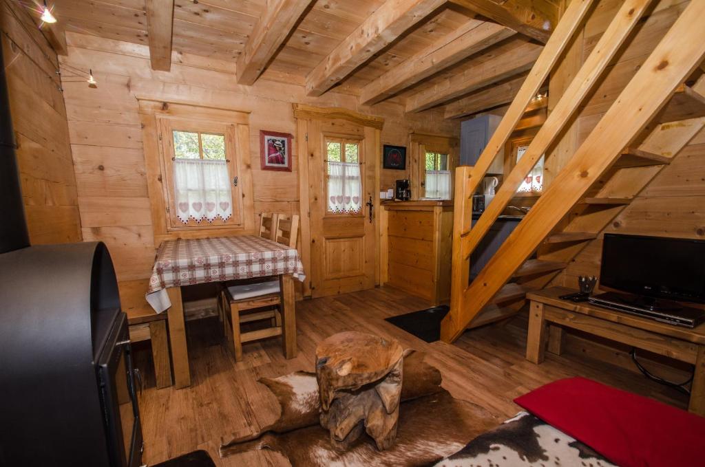 Le chalet est doté d'un coin salon avec canapé, d'un salon avec coin repas et d'une télévision à écran plat avec lecteur DVD. Il comprend en outre une salle de bains privative.