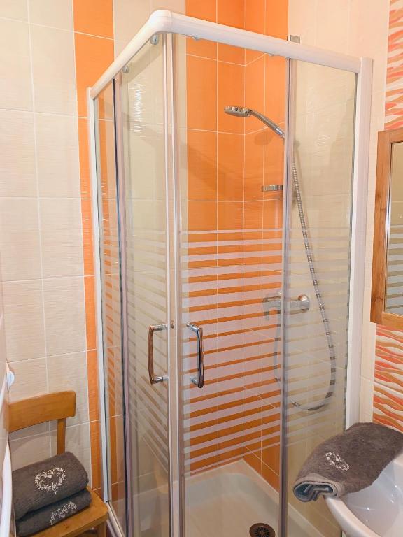 La salle de bains est pourvue d'une douche et d'un sèche-cheveux. Les serviettes et le linge de lit sont fournis.