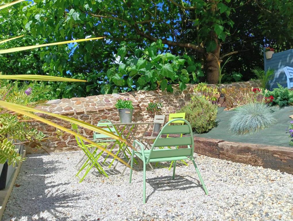 Située à Lanvallay, la CHAMBRE DOUILLETTE DANS LONGERE AU VERT propose un salon commun, un jardin et une terrasse. Offrant une vue sur le jardin, il s