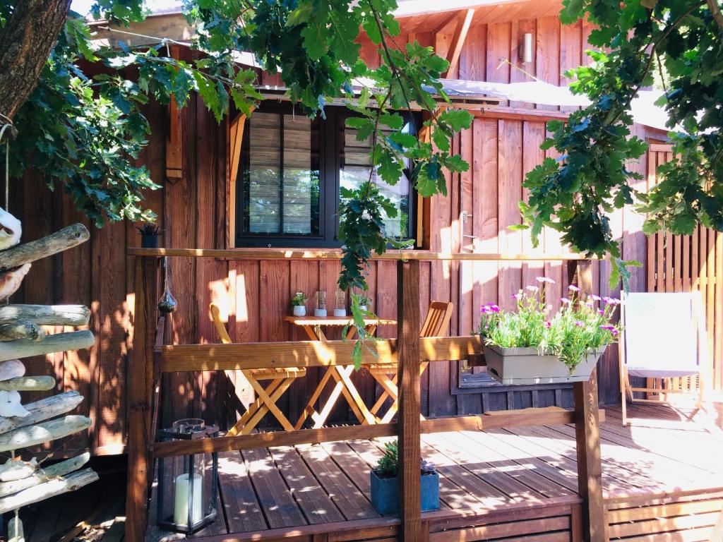 Offrant une vue sur le jardin, le Mobil home Happiness33 dans camping 5 étoiles accès direct plage Vendays Montalivet est situé à Vendays-Montalivet.