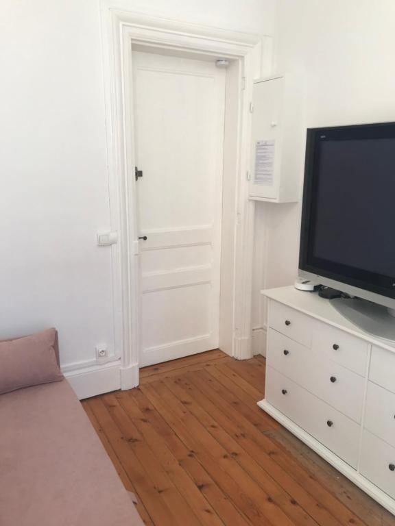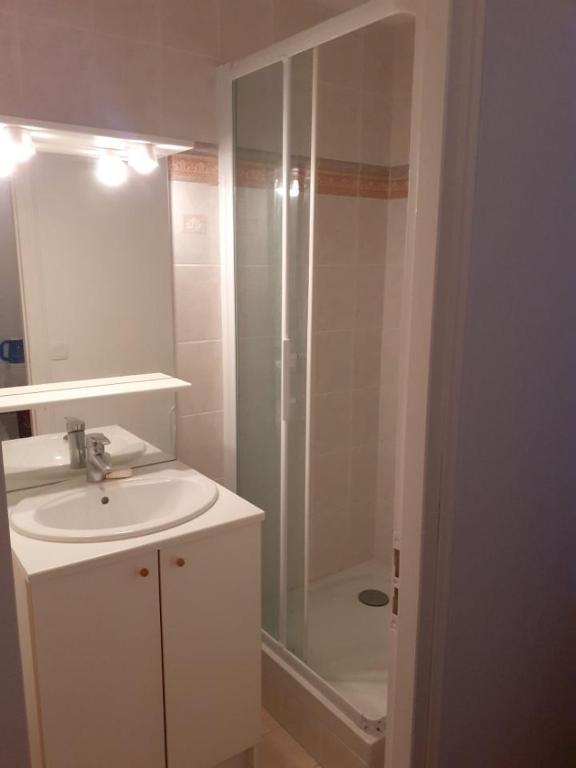 Cet appartement comprend une chambre, une salle de bains avec douche et une télévision à écran plat.