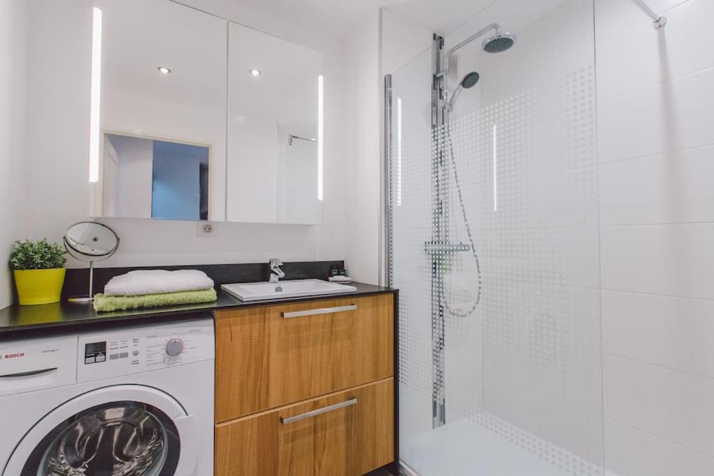 Cet appartement comprend une chambre, une télévision à écran plat, une cuisine équipée, un lave-linge et une salle de bains pourvue d'une douche.