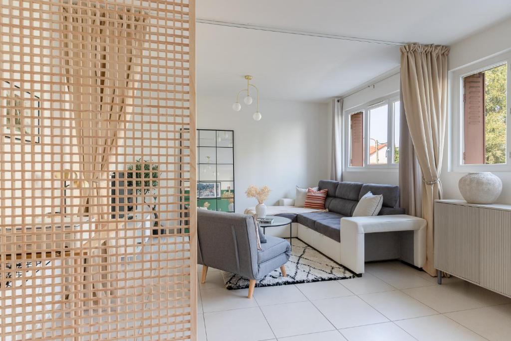 Offrant une vue sur le jardin, le Superbe calm apartment with parking propose un hébergement avec un balcon, à environ 200 mètres de la bibliothèque L