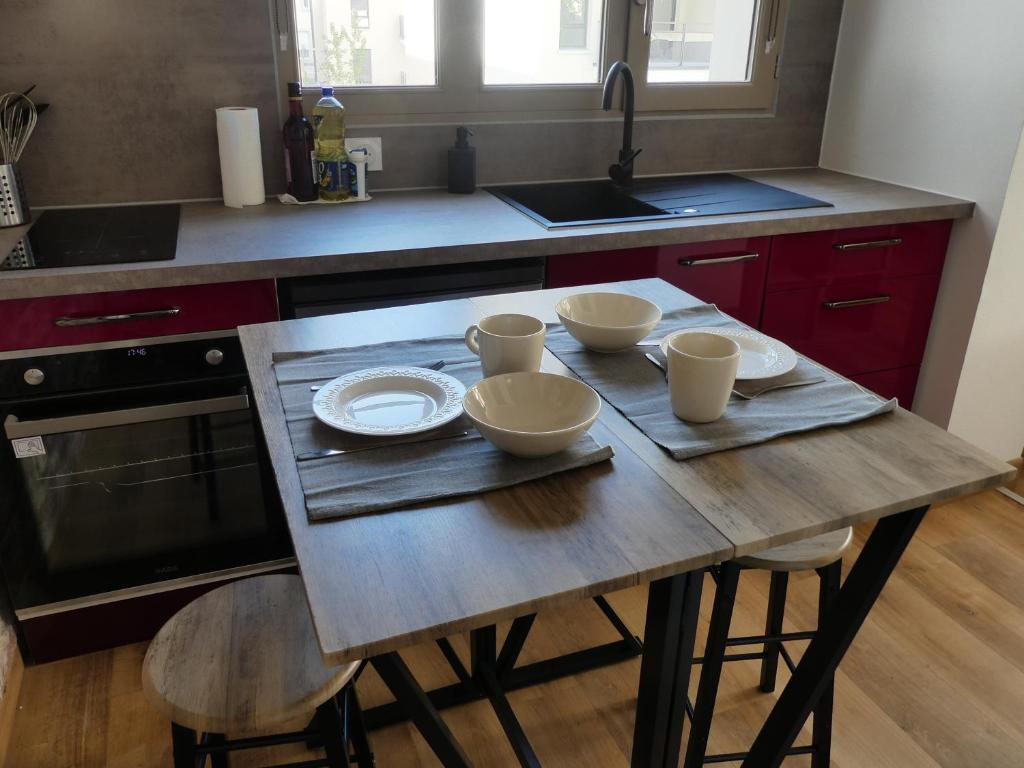 Pro: Appartement très confortable et très bien équipé (Café, thé, pastilles lave-vaisselle, torchons, etc.). Très jolie décoration. Entrée dans les lieux facile et bien expliquée. Localisation parfaite pour découvrir Dijon, à deux pas du centre, avec plein de restos à proximité (et une supérette juste à coté de l'appart). Une place de parking est comprise pour l'appartement, ce qui est très appréciable car le stationnement est payant autour de l'appart.