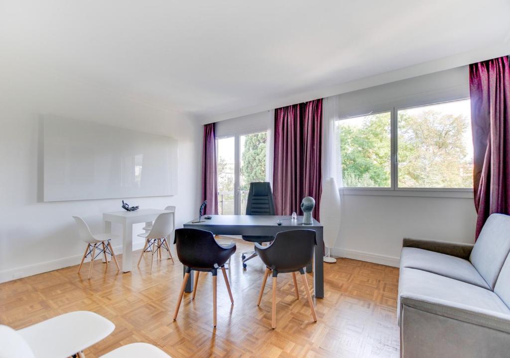Digne d'un service hôtelier, l'appartement se compose d'une entrée avec canapé, d'une cuisine séparée et équipée, d'un salon avec un grand bureau et un canapé-lit 2 places, d'une chambre avec lit King-Size, d'une salle de bain avec douche à l'Italienne, ainsi que d'un balcon accessible depuis le salon et la chambre. Situé sur le Cours Fauriel, l'un des plus beaux quartiers de St-Etienne, vous serez à proximité de la gare sans avoir à entrer dans le centre-ville ! Draps et serviettes fournis. Parking privé sur demande. Le logement - Entrée avec canapé, placards et penderie - Salon séjour aménagé avec grand bureau, canapé-lit 2 places, table à manger et TV - Cuisine séparée et équipée : lave-vaisselle, plaques de cuisson, réfrigérateur, micro-ondes, cafetière, grille-pain, bouilloire, vaisselle et couverts. Vous disposerez également d'une seconde table à manger, pour 4 personnes, dans la cuisine. - Chambre avec lit King-Size 180 cm x 200 cm, TV - Salle de bain avec douche à l'Italienne, sèche-cheveux et miroir grossissant - WC séparé - Balcon exposé NORD, accessible depuis le salon et la chambre.