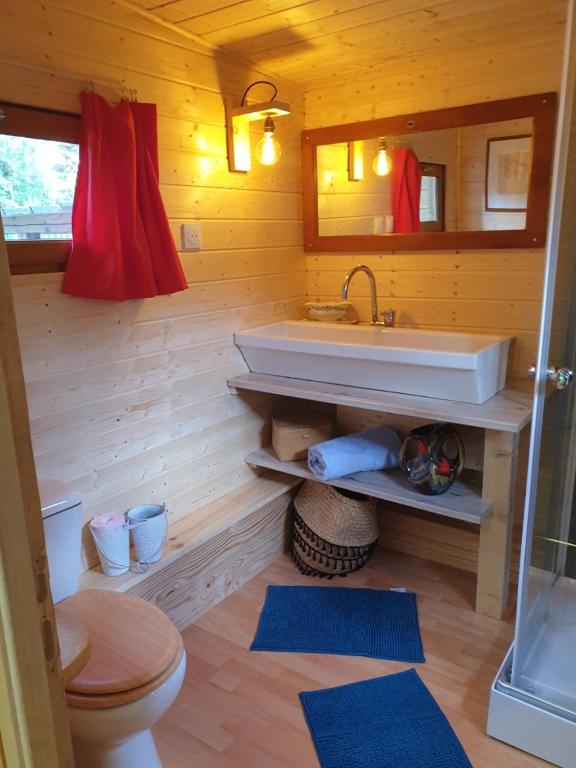 Petit chalet chauffé avec kitchenette et salle d'eau wc. Lit double et terrasse. Linge de lit fourni. Tout confort.