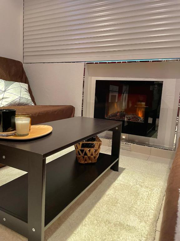 Cet appartement comprend une chambre, une cuisine équipée d'un réfrigérateur et d'un four, une télévision à écran plat, un coin salon et une salle de bains pourvue d'une douche.