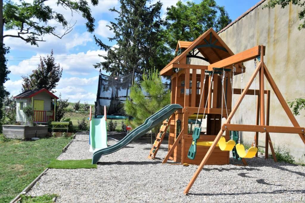 Il possède une piscine extérieure, une aire de jeux pour enfants et une terrasse.