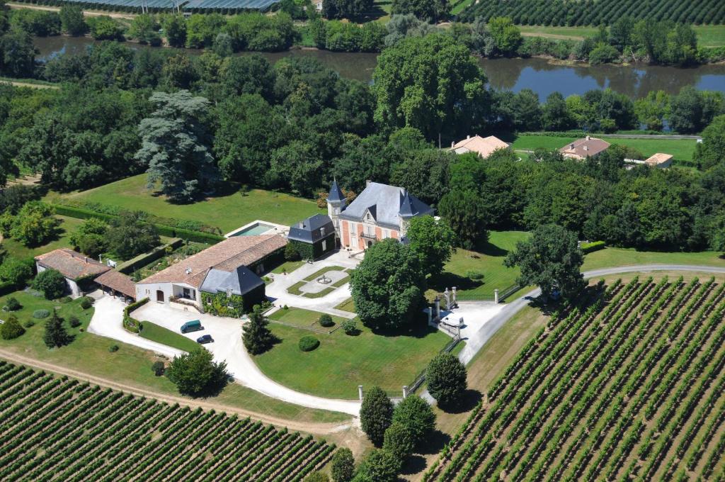 Situé à Eynesse, en Aquitaine, l'établissement Le Pigeonnier de Château Picon dispose d'une terrasse. Elle offre une vue sur le jardin et se trouve à