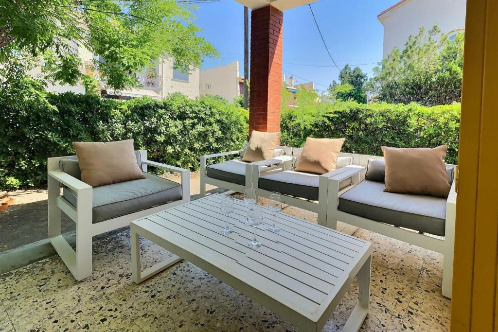 Située à Valras-Plage, à 700 mètres de la plage du Casino, la Coquette maison pour 8 personnes à 280m de la mer dispose d'une terrasse, d'un jardin et
