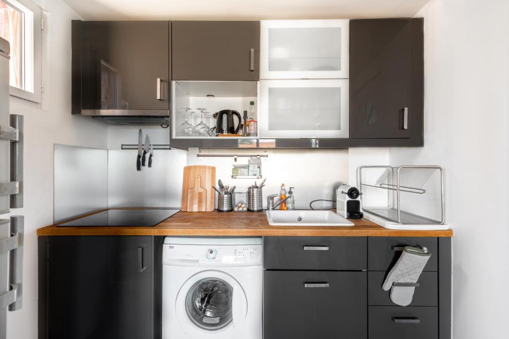 Cet appartement comprend une chambre, une télévision à écran plat ainsi qu'une cuisine entièrement équipée avec un micro-ondes, un réfrigérateur et un lave-linge. Les serviettes et le linge de lit sont fournis.