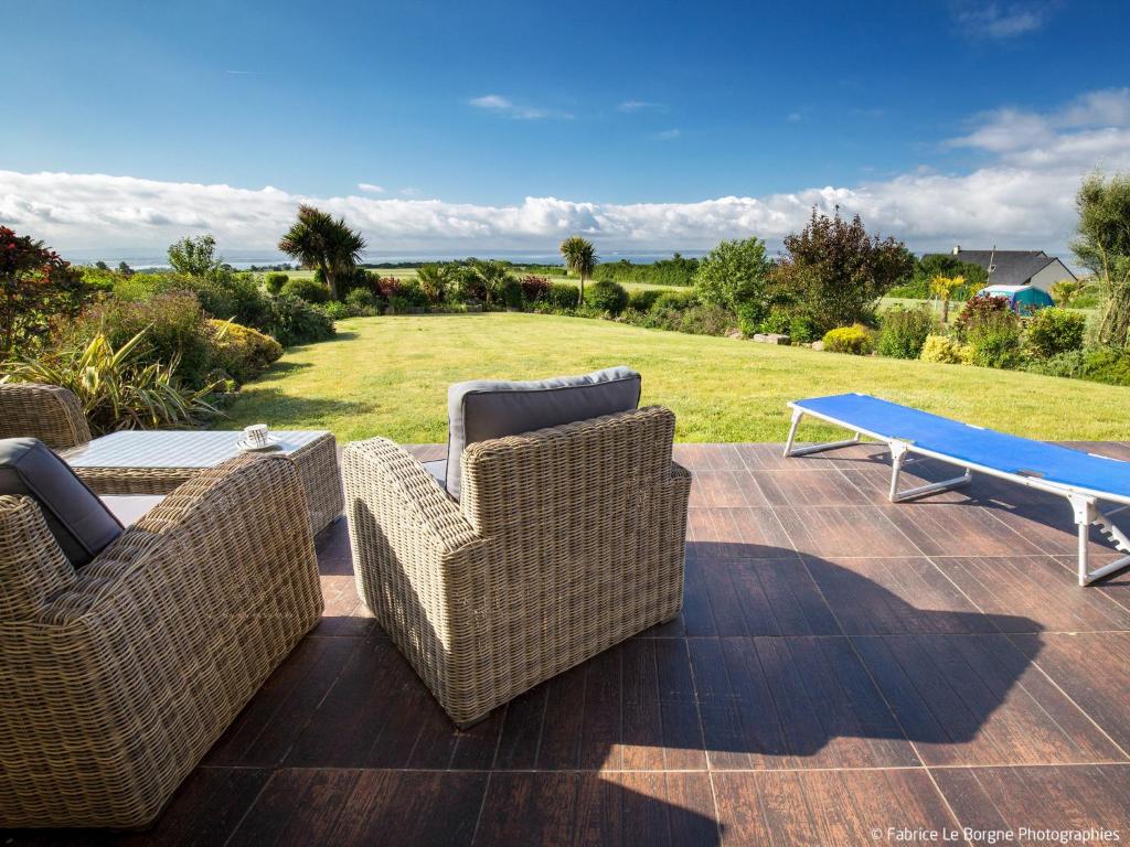 Caractéristique : Veuillez noter : Maison non-fumeur. Situation : vue mer, vue baie de Douarnenez. Accès/parking : garage; stationnement sur le domaine. Domaine (à usage privé) : env. 1340 m², à flanc de colline, paysagé, entretenu, jardin, gazon. Aménagements extérieurs(à usage privatif) : terrasse 70 m², meubles de jardin mis à disposition, parasol, barbecue transportable. ● Distances : Centre Telgruc-sur-Mer env. 1 km. Crozon env. 12 km. Châteaulin env. 24 km. Prochain supermarché (Telgruc-sur-Mer) à env. 1 km. Mer env. 2,2 km. Plage de sable à env. 2,2 km (Plage de Trez-Bellec). Piscine publique couverte à env. 15 km (Crozon-Morgat).