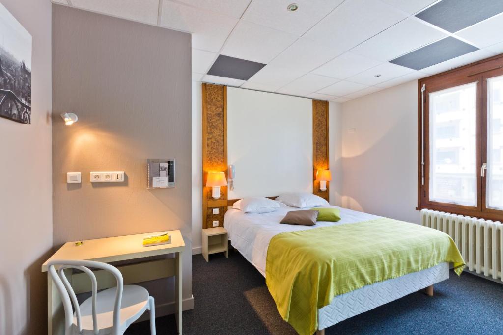 Doté d'un restaurant, l'Logis - Hôtel Restaurant Bellevue Annecy est situé à 3 km du lac d'Annecy et du centre-ville d'Annecy. Une connexion Wi-Fi est disponible gratuitement dans l'ensemble de l'établissement. Accessibles par un escalier, les chambres disposent d'une salle de bains privative et d'une télévision à écran plat. Le petit-déjeuner est servi tous les jours à l'Logis - Hôtel Restaurant Bellevue Annecy. Le restaurant de l'hôtel sert une cuisine traditionnelle que vous pourrez déguster sur la terrasse par beau temps. Un parking gratuit et public est disponible à proximité (sans préalable). Places de stationnement la rue Les salles de réunion de l'hôtel peuvent accueillir 30 personnes. L'Hôtel Bellevue se trouve à 8 minutes en voiture de la gare d'Annecy et de l'aéroport d'Annecy Haute-Savoie.