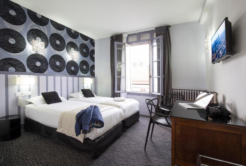 Doté d’un parking privé, l’Hôtel Raymond 4 Toulouse vous accueille à Toulouse, à 5 minutes à pied de la place du Capitole. Cet établissement propose des hébergements au style Art déco avec une connexion Wi-Fi gratuite et la climatisation. Le stade et l'école de commerce de Toulouse se trouvent respectivement à 4,5 km et 1,5 km. Les chambres sont insonorisées et décorées individuellement. Chaque logement comprend une radio, une salle de bains privative ainsi qu’une télévision avec Canal+ et des chaînes internationales. L'Hôtel Raymond 4 Toulouse sert un petit-déjeuner complet quotidien. Vous pourrez le déguster dans le confort de votre chambre. En outre, un service d’étage est assuré. L'Hôtel Raymond 4 Toulouse est implanté à 15 minutes à pied du centre des congrès Pierre Baudis. Vous séjournerez à 250 mètres de la station de métro Jeanne d’Arc et à 5 minutes de marche de la gare de Toulouse-Matabiau. L’établissement dispose uniquement d’une prise de courant classique au fond du garage. Sous réserve de disponibilité, vous pourrez recharger votre véhicule électrique moyennant un supplément de 10 EUR par nuit ou par jour.