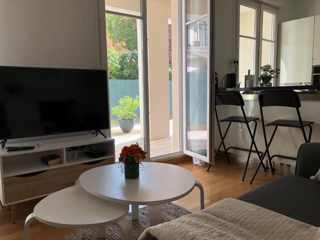 Offrant une vue sur le jardin, le Sublime Appartemt 5 min Disneyland/Vallée Village/Val d'europe propose un hébergement avec un jardin et un balcon, à