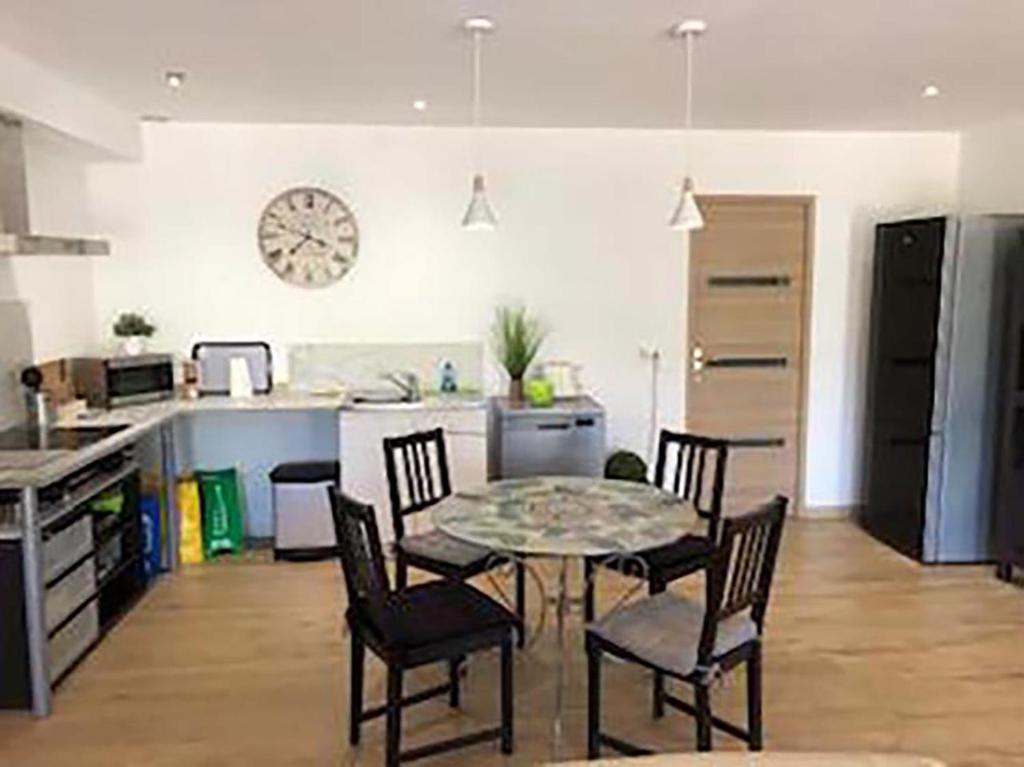 Cet appartement comprend une chambre, une salle de bains, du linge de lit, des serviettes, une télévision à écran plat, un coin repas, une cuisine entièrement équipée et une terrasse avec vue sur le jardin.