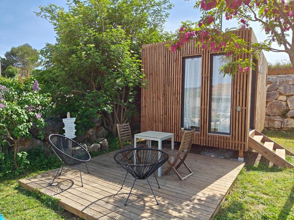 Doté d'un court de tennis et offrant une vue sur le jardin, l'établissement La Cabane de Lili Prune est situé à Goudargues, à 50 km de la gare centrale d'Avignon et à 48 km du pont du Gard. Cet hébergement climatisé se trouve à 34 km du pont d'Arc. Vous pourrez profiter d'un parking privé sur place et d'une connexion Wi-Fi gratuite. Cet établissement non-fumeurs se trouve à 35 km des gorges de l'Ardèche. Cet appartement comprend une chambre séparée, une salle de bains, une kitchenette entièrement équipée avec un coin repas, un coin repas extérieur et une télévision à écran plat. Les serviettes et le linge de lit sont fournis. Pour plus d'intimité, l'hébergement dispose d'une entrée privée. Une supérette est disponible sur place. Vous pourrez pratiquer la pêche et la randonnée dans les environs ou profiter du jardin. Le casino Fumades les Bains se trouve à 33 km. L'aéroport d'Avignon-Provence, le plus proche, est implanté à 59 km.