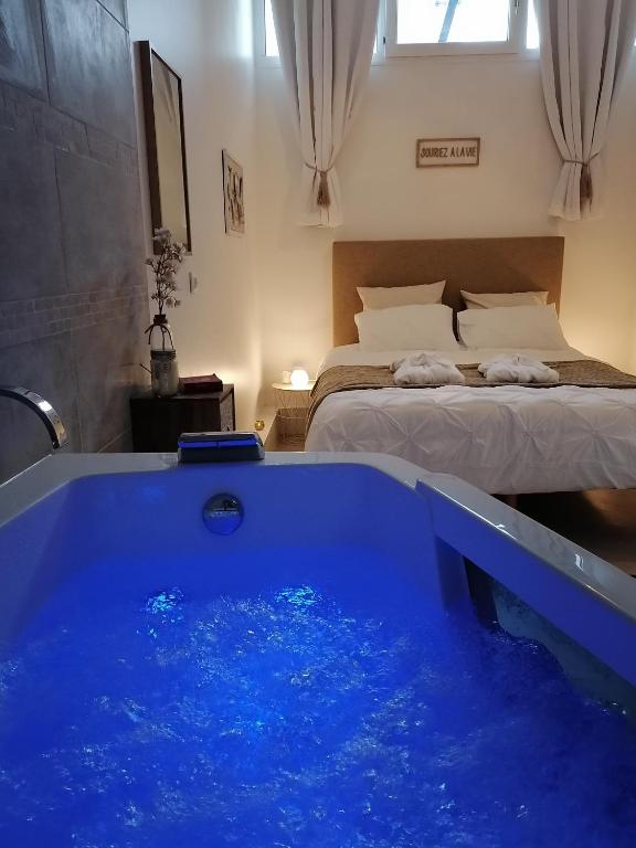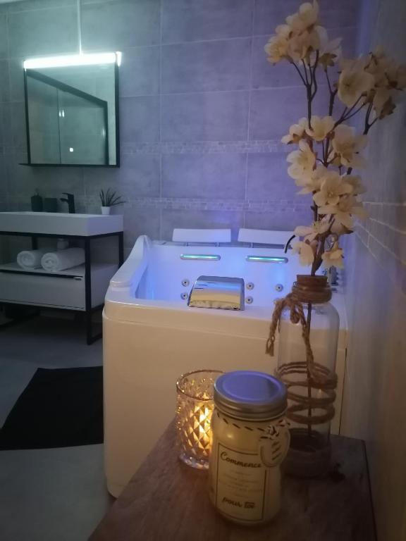 Vous pourrez profiter d'un jacuzzi sur place. La clef des bulles possède une terrasse.