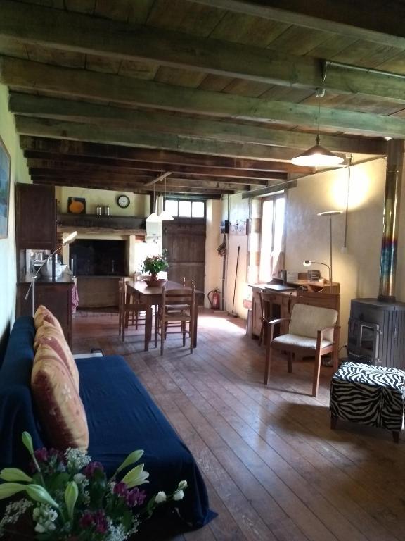 Vakantiehuis La Ferme en Tuiles is het woongedeelte van een eeuwenoude boerderij. Het huisje, waar we 10 jaar zelf hebben gewoond, bestaat uit een goed geoutilleerde keuken , een woonkamer met slaapbank, een prachtige badkamer met inloop douche en een slaapzolder. U heeft een eigen ingang en een erf op het zuiden waar u heerlijk kunt luieren met uitzicht op de weiden, de kippenren, de moestuin en de mooie lindeboom. Een vuurplaats en een barbecue kunnen een fijne avond inluiden onder een geweldige sterrenhemel. Voor de koudere perioden is er een behaaglijke houtkachel en/of een oliekachel. Het huisje is geschikt voor maximaal 3 personen.