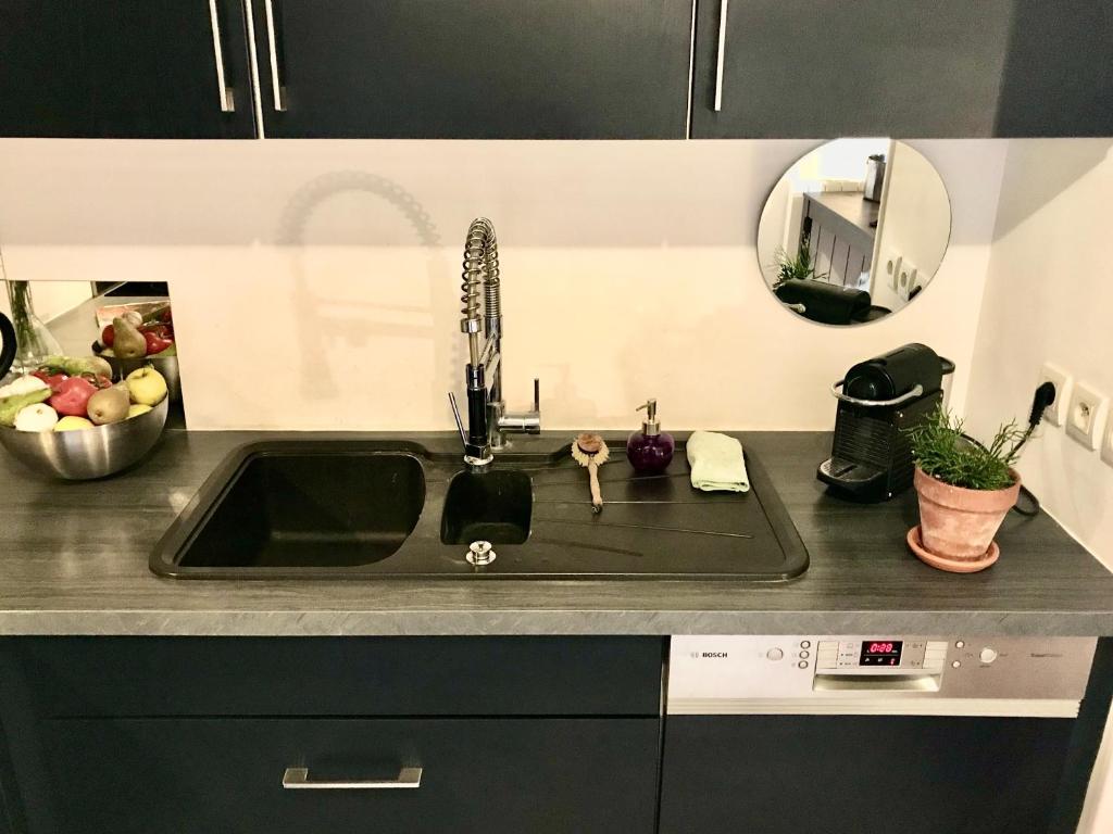 Cet appartement comprend 2 chambres ainsi qu'une cuisine équipée d'un lave-vaisselle, d'un micro-ondes et d'une bouilloire.