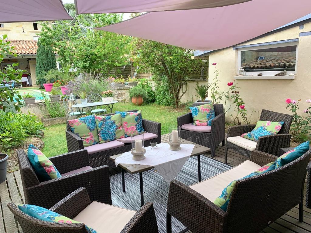 Situé à Puisseguin, l'établissement La Maison du Bourg dispose d'une piscine extérieure ouverte en saison, d'un jardin et d'une terrasse. Mérignac se trouve à 46 km.