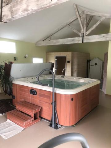 Notre propriété est dotée du salle de bien-être de 80M2 équipée d'un jacuzzi et d'un hammam unique en chambre d'hôtes à Pornic. De plus, 2 masseuses professionnelles se tiennent à votre disposition pour des massages relaxant, pierres chaudes...