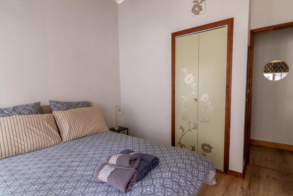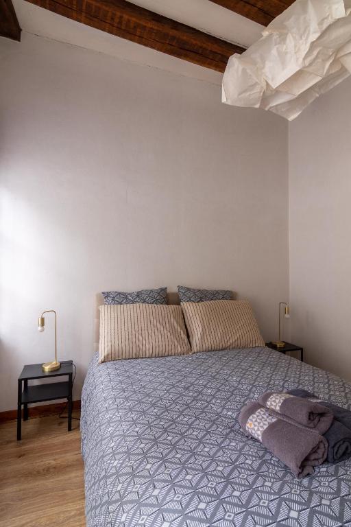 Chambre grise dans une demeure du 16ème à Saumur comprenant cuisine équipée
