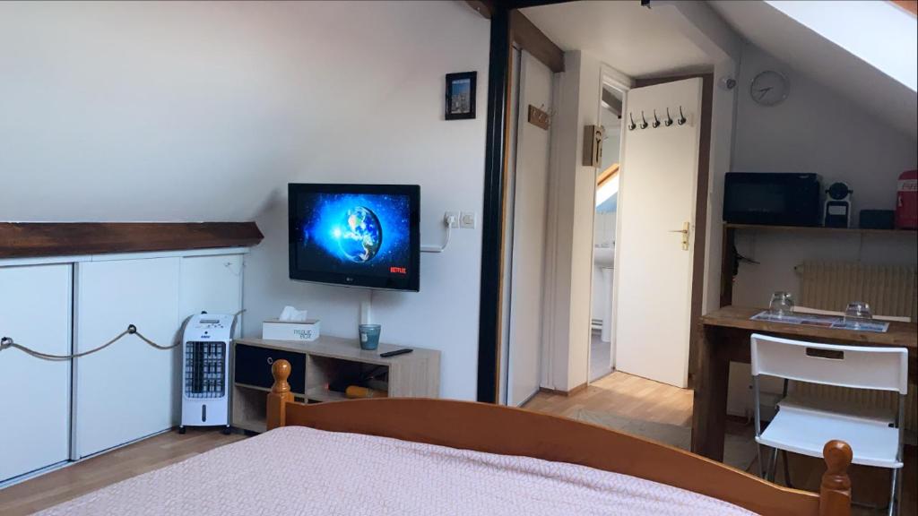 Cette chambre d'hôtes dispose d'une télévision à écran plat. Les serviettes et le linge de lit sont fournis.