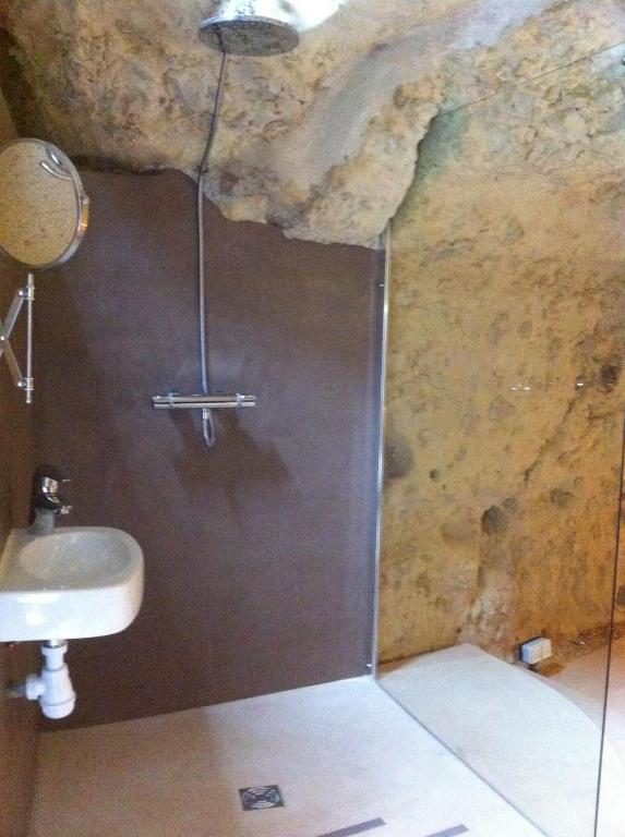 Le gîte offre une vue sur le château du Clos Lucé et comprend une télévision à écran plat ainsi qu'une chambre troglodyte unique bénéficiant d'un accès direct à une terrasse.