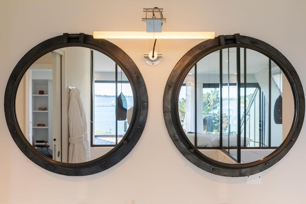 Située sur une pointe du Golfe du Morbihan à Baden, notre maison d’hôtes en Bretagne, proche de Vannes, offre une vue panoramique de l’entrée du Golfe à la rivière d’Auray. La Villa du Guern possède un grand parc arboré de 7000 m² avec une vaste piscine surplombant la mer, un accès direct à la plage du Guern et au chemin côtier. Située à 1 km du GR34 et à 2 km du Golf Bluegreen Baden, elle vous permet des activités toutes proches. Notre maison d’hôtes à Baden, moderne et lumineuse, vous propose 5 chambres avec terrasse, dont 4 avec une superbe vue sur le Golfe du Morbihan. Pour vous offrir une expérience unique dans cette chambre d’hôtes en Bretagne, la Villa du Guern possède un confort raffiné et des équipements de qualité : spa au jardin, sauna, salle de relaxation, espace fitness et salon-bibliothèque. La Villa du Guern, qui peut accueillir jusqu’à 12 personnes, peut aussi être privatisée si vous souhaitez vivre un événement familial dans l’intimité de cette très belle chambre d’hôtes au bord de l’eau ou organiser un séminaire de travail dans ce cadre confidentiel.