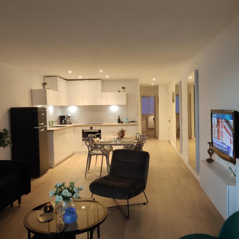 L'appartement LE 21 Vue sur Mer est situé à Concarneau, à 1 km de la plage des Sables Blancs et à 2,1 km du château de Keriolet. Cet établissement en bord de mer dispose d'une terrasse, d'un parking privé gratuit et d'une connexion Wi-Fi gratuite.