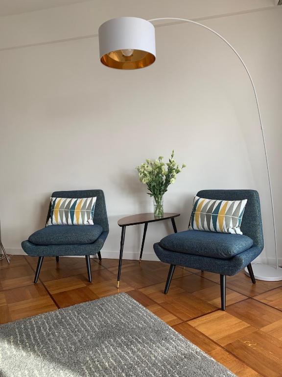 Cet appartement comprend 2 chambres, un salon, une télévision à écran plat, une cuisine équipée avec un coin repas ainsi qu'une salle de bains pourvue d'une douche et d'un lave-linge.