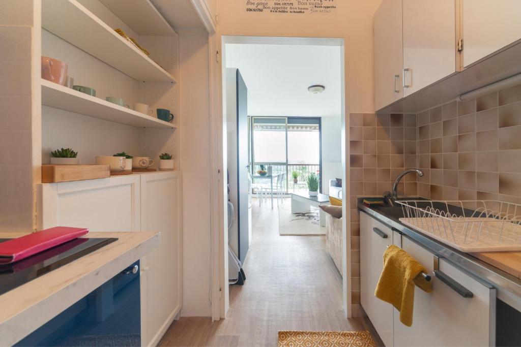 Cet appartement dispose d'une télévision. Ce logement comprend des coins salon et repas ainsi qu'une cuisine équipée d'un four, d'un micro-ondes et d'un réfrigérateur.