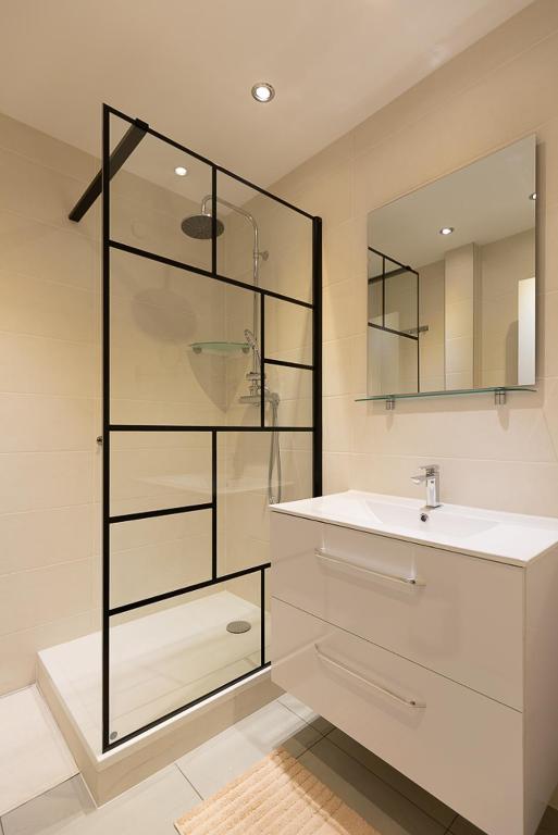 Cet appartement comprend une chambre, une télévision à écran plat, une cuisine équipée, un lave-linge et une salle de bains pourvue d'une douche.