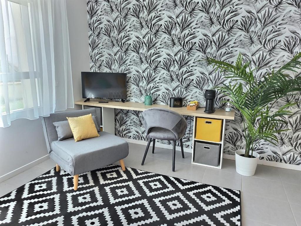 Charmant studio non-fumeur, lumineux et fonctionnel pour 3 personnes. Situé à Moussy le neuf, village fleurie, proche du centre-ville, vous y trouverez restaurants, boulangerie, un Intermarché avec station-service, tabac, pharmacie etc… Pour vous détendre sur place, vous pourrez vous promenez autour de l’étang pour une petite balade au calme. Aller au Bowling pour passer une soirée un peu plus active. Le Soléo, vous propose un parking privé, avec arrivée / départ autonome via code personnel. Un panier de bienvenu sera mis à votre disposition avec friandises, boissons, thé et café. Il possède 1 couchage 180X200 pouvant être séparé en 2 lits (à préciser à la réservation) et un convertible pour 1 personne 80X180. Draps et serviettes de bain fournis, cuisine équipée, bouilloire, expresso, grille-pain etc. De quoi vous accueillir agréablement. Connexion Wifi gratuite et chaines TV satellite Vous aurez accès à la buanderie, ou vous y trouverez, machine à laver, sèche-linge, fer et table à repasser et aspirateur. CHEQUES VACANCES ANCV sont les bienvenus !