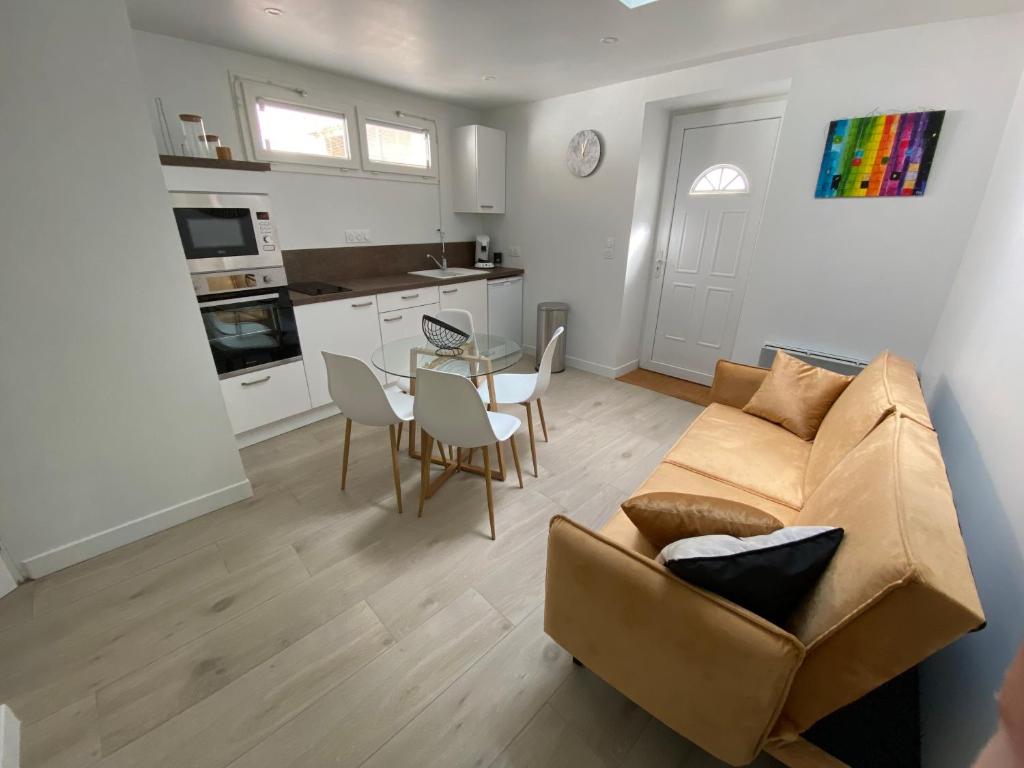 Situé à Surgères, le Charmante maisonnette 2-4 personnes avec wifi propose un hébergement avec une terrasse et une connexion Wi-Fi gratuite. Elle offr